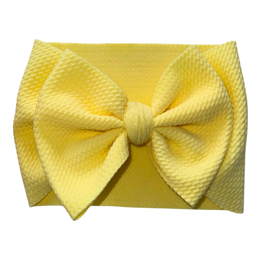 My high-quality headband bows are the perfect accessory for your little girl. Made with stretchy, textured material, you'll have fun styling outfits with any color! Best of all, they will never come unraveled so washing is simple! Available in baby and toddler (please see size chart for reference).
