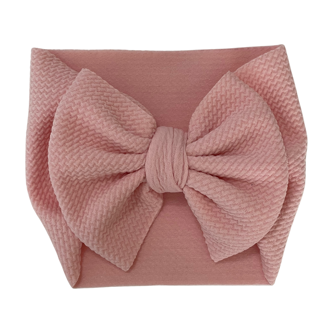 My high-quality headband bows are the perfect accessory for your little girl. Made with stretchy, textured material, you'll have fun styling outfits with any color! Best of all, they will never come unraveled so washing is simple! Available in baby and toddler (please see size chart for reference).