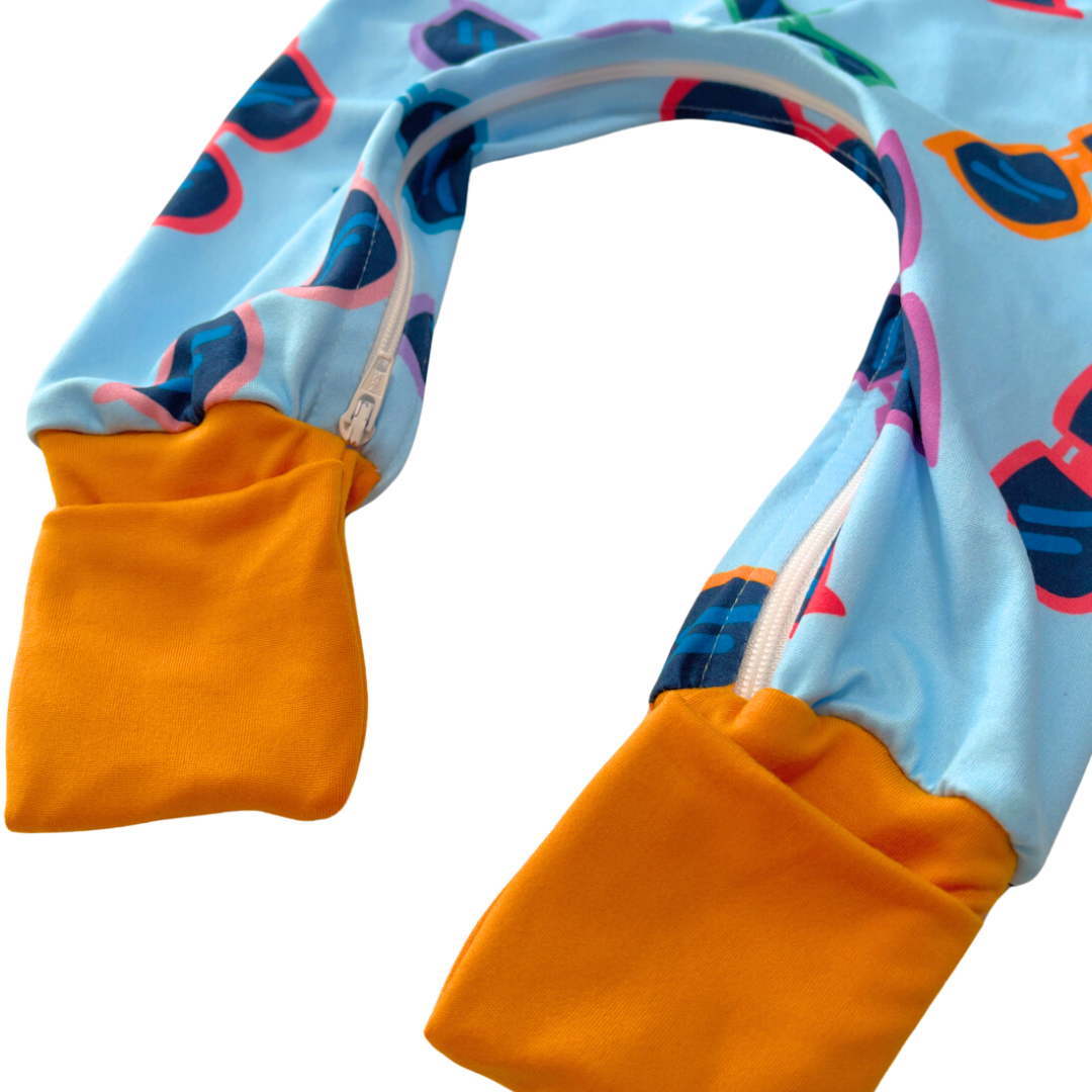 Our patent pending design with an ankle-to-ankle zipper makes midnight (or any!) diaper changes a breeze.